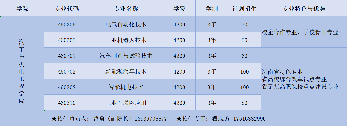 我院2023年高招专业目录