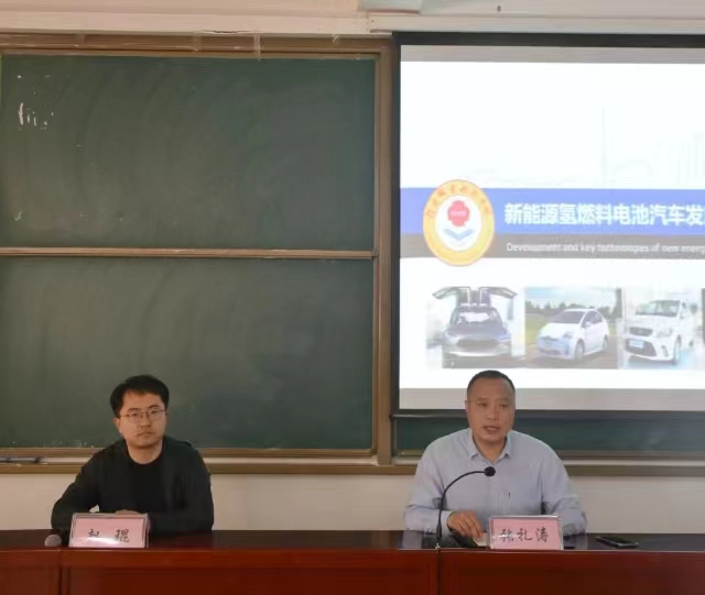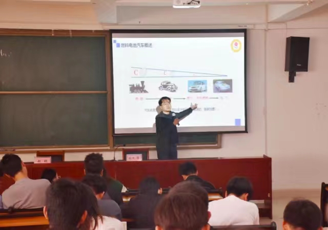 4月21日下午,汽车技术服务教研室主任赵琨为汽车类专业全体学生做了题为“新能源氢燃料电池汽车发展及关键技术” 的学科前沿讲座,讲座由党总支副书记张礼涛主持。