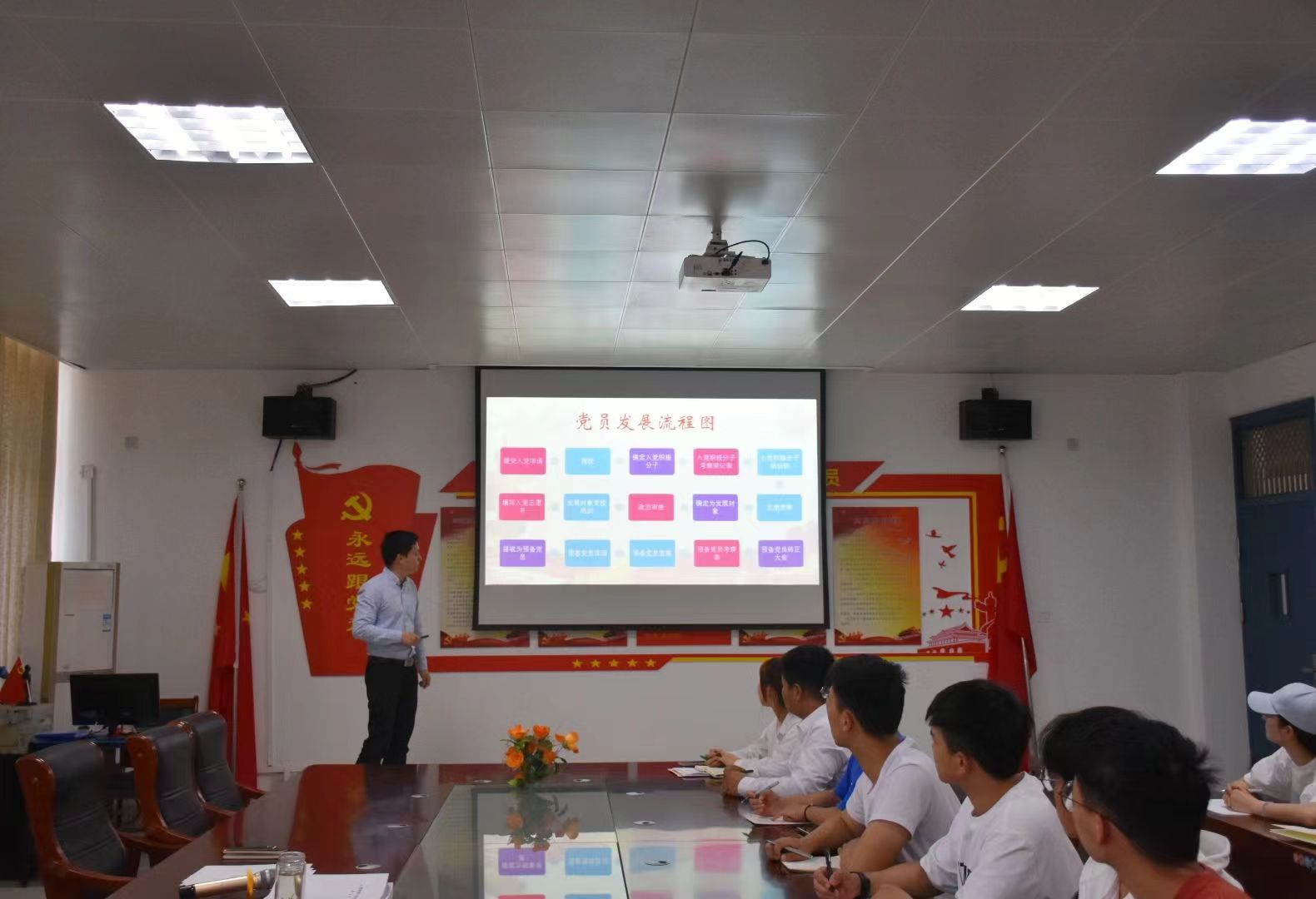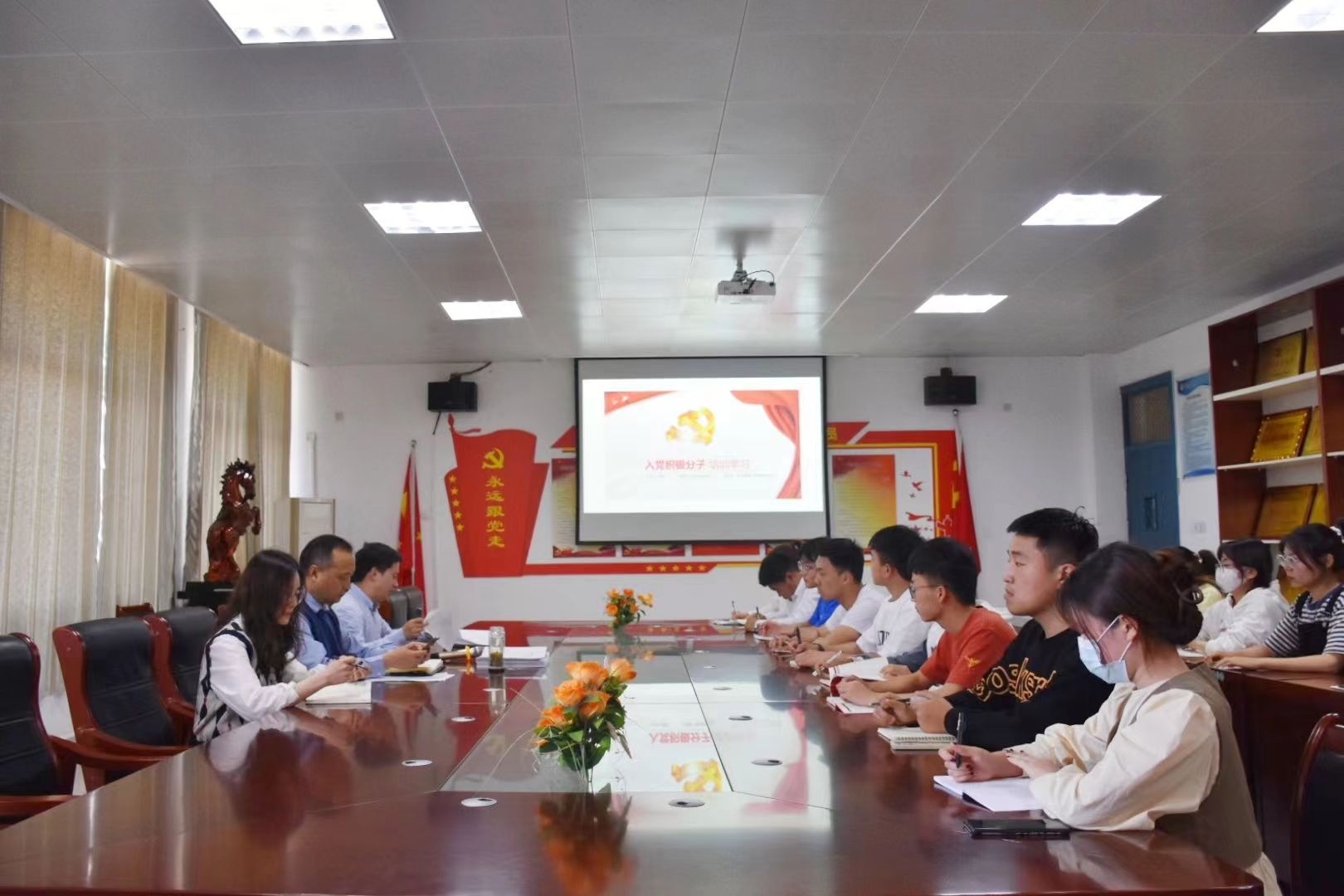 为加强发展对象进一步了解党员发展流程,确保入党材料填写质量,5月17日下午,乐鱼官方端网站登录入口学工党支部组织员、团总支书记李明对党员发展对象进行了培训。学工党支部书记张礼涛和李秋爽老师以及20名学生党员发展对象参加了本次培训会。