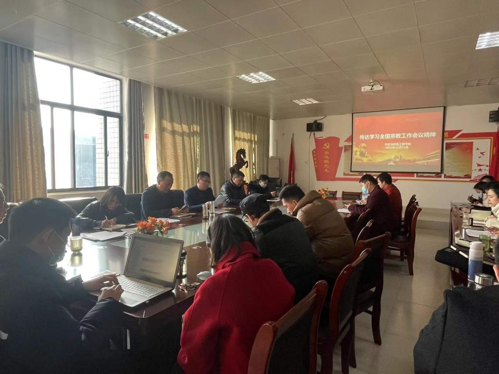 12月21日下午,乐鱼官方端网站登录入口集中学习全国宗教工作会议精神等相关文件。院长吕争、党总支副书记张礼涛、副院长曾勇、王平俊及全体教职工参加,党总支书记代翔主持活动。