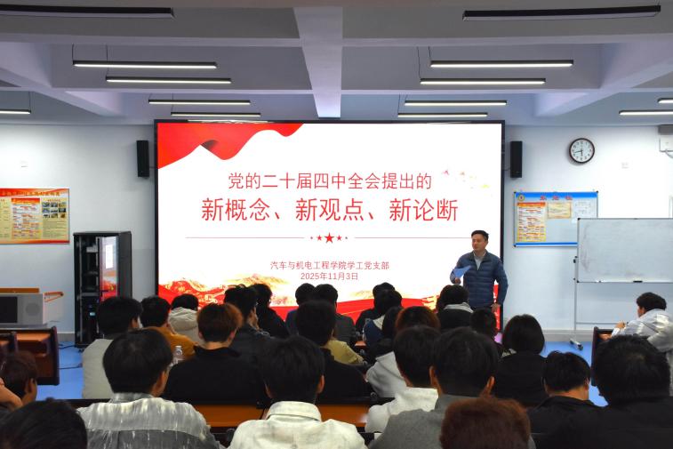 会上,学院团总支书记李明带领参训人员首先系统学习了党的二十届四中全会公报及相关文件精神,重点围绕全会审议通过的《中共中央关于制定国民经济和社会发展第十五个五年规划的建议》进行了深入学习和解读。会议引导同学们认识到,“十五五”时期是我国全面建设社会主义现代化国家新征程的关键五年,“十五五”规划建议中强调的智能化、绿色化、融合化产业发展方向,以及关于巩固提升优势产业、培育壮大新兴产业、布局建设未来产业等一系列重大举措,为汽车、机电、新能源等相关领域的技术技能人才培养指明了方向,也为青年学子提供了广阔的发展机遇和奋斗舞台。会议要求全体学生干部要带头学习领会国家大政方针,将个人成长融入国家发展大局,增强专业学习的紧迫感和使命感。