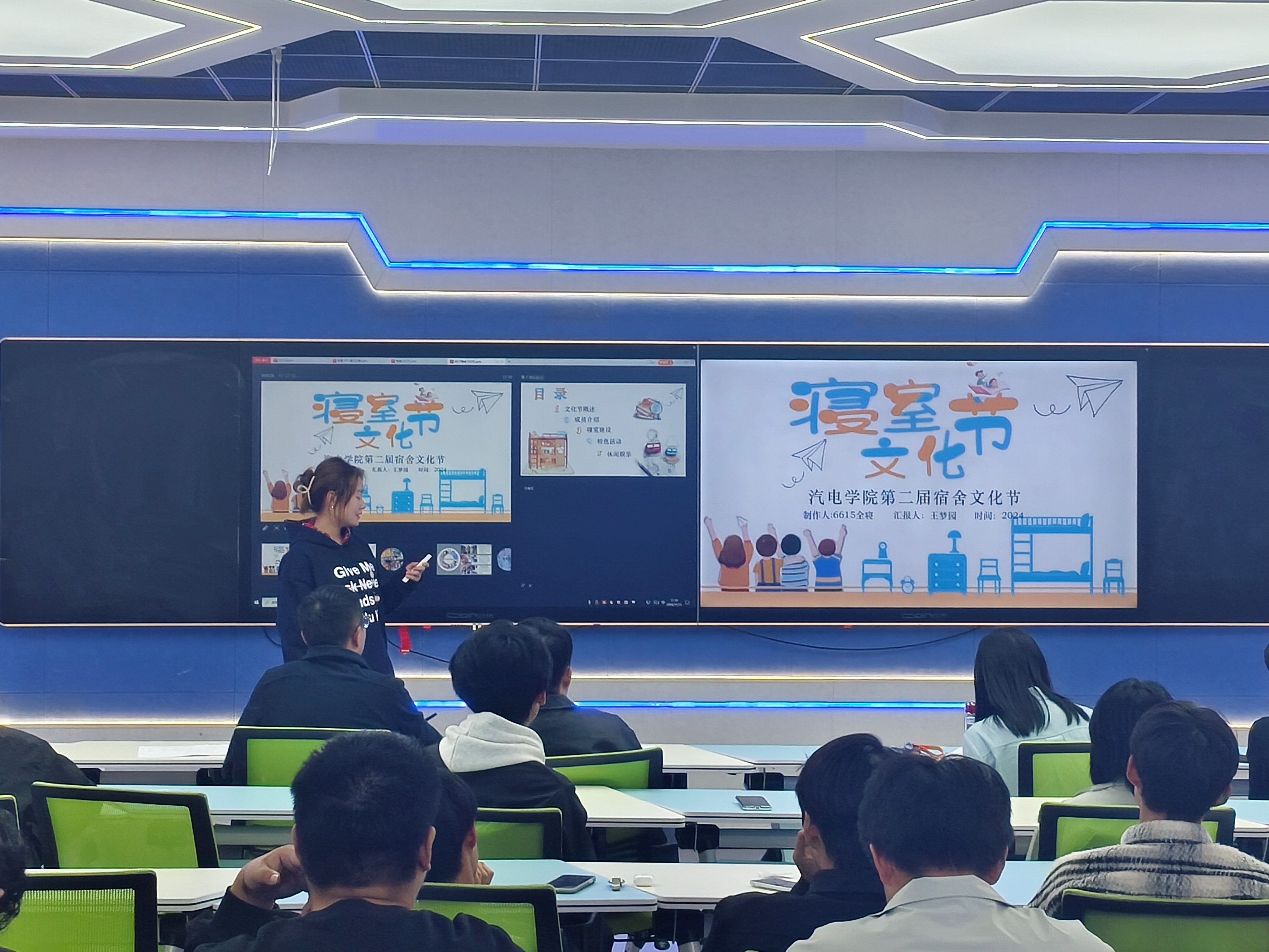 为丰富校园文化生活,提升学生的团队合作精神与创新能力,展现当代大学生的风采,营造和谐、温馨、富有特色的宿舍文化氛围,11月11日下午,我院在智慧教室2007成功举办了一场别开生面的宿舍文化节活动。出席活动的有乐鱼官方端网站登录入口书记朱燕鸣、副院长曾勇、辅导员沈广旭、朱凯,活动由沈广旭主持。