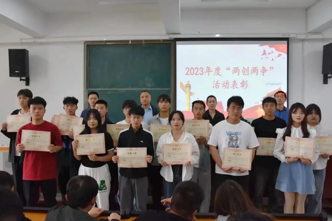 翟志方宣读获得“两创两争”表彰的文明班集体、文明学生、文明宿舍获奖名单。